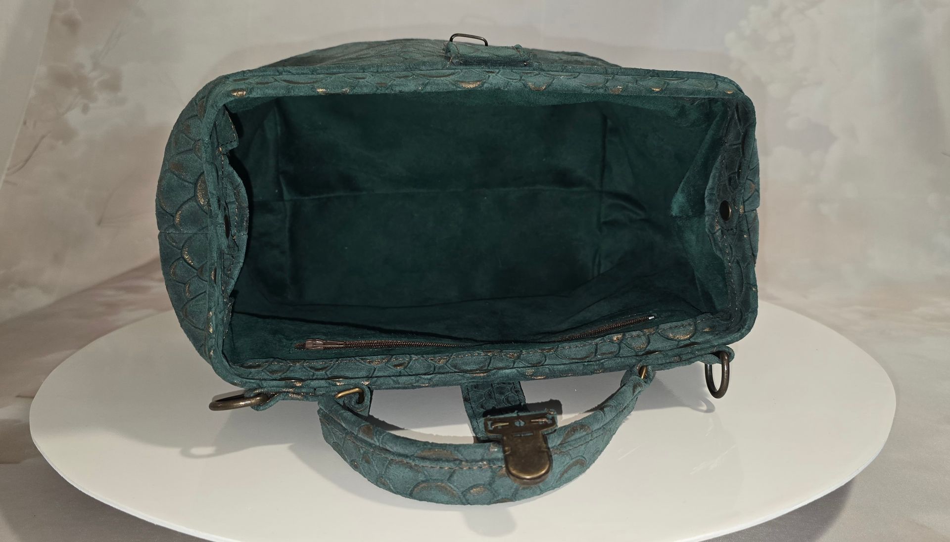 De binnenkant is gevoerd met geitenleer en heeft een klein vakje.