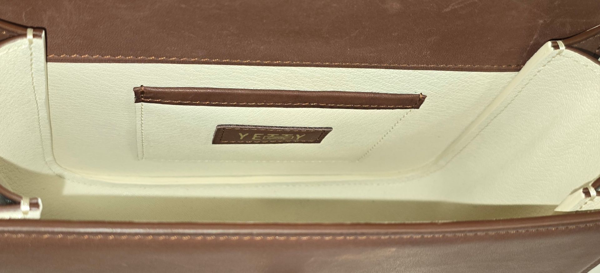 De tas kan zonder hengsel als clutch besteld worden (de ringen in de zijpanden komen dan te vervallen).